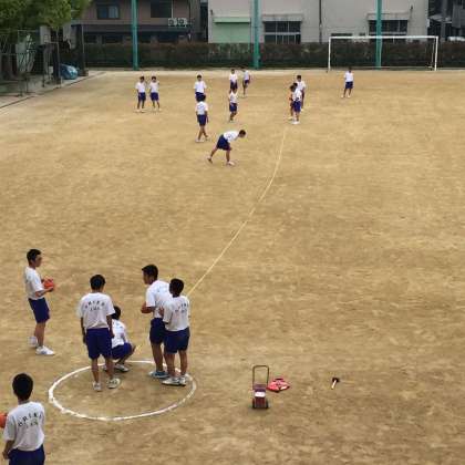 ふと覗くと、体力測定でハンドボール投げをしていました。