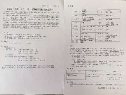 一泊移住説明会 公開日 2016/05/16 更新日 2016/05/16 お知らせ 先週の土曜参観の後、多目的室で一泊移住説明会が行われました。 来月6月1日から1年生が一泊移住にびわこ青少年の家へ出かけます。 学年主任の藤本先生や原先生の方から、出発から帰校までをレジュメに沿って説明があり、その後プロジェクターで画像を映し出し、よりわかりやすい説明となりました。 保護者からは、持ち物や常備薬、入浴のことなど様々な質問があり、それに丁寧に応える事で不安は解消されたと思います。 いいね(0)