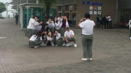 淡路SAで20分のトイレ休憩です。 さっそく記念写真撮影大会です。