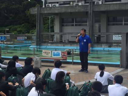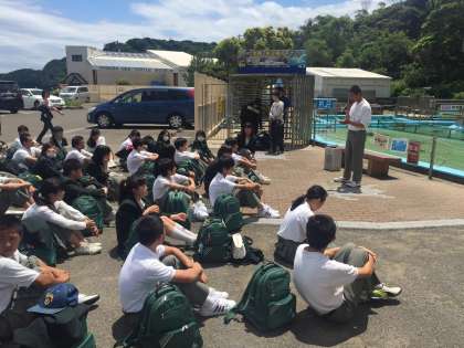 浜辺で学級写真を撮った後、入村式を行い、再びバスに乗りそれぞれがお世話になる村へと向かいました。