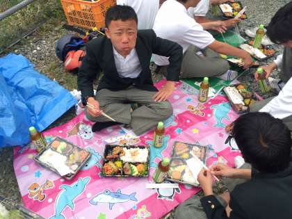 第70期生修学旅行 公開日 2016/06/01 更新日 2016/06/01 お知らせ さあて、お弁当です。 各自、戎先生からお弁当を受け取り、気の合う友達とお弁当を食べました。 先ほどの引きつった笑顔から、安堵の笑みへ。 いいね(0)