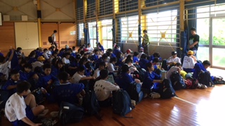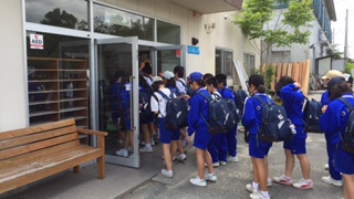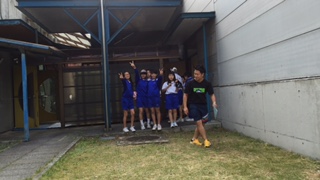 体育館に荷物を置いて、ハイキングへ。 さあ出発!