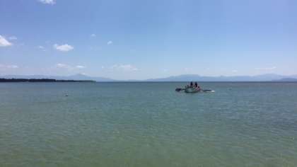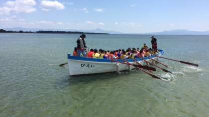 とってもいい天気! 風が少しありましたが、壮大な琵琶湖でのカッター体験です。