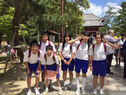 画像は午前中の班ごとのポイントラリーの様子です。班全員が力を合わせて・・・。