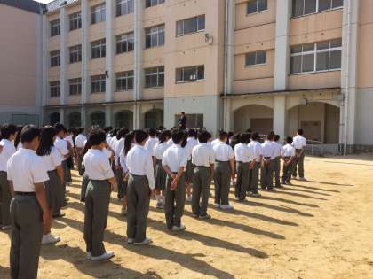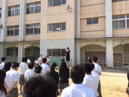 全校集会 公開日 2016/06/06 更新日 2016/06/06 お知らせ 本日、夏の日差しが清々しい中 定例の全校集会が行われました。 校長先生のお話の後、今日から24日までの3週間、本校に教育実習に来られる先生方が紹介されました。本年度は、2名の方が実習に来られました。 画像3枚目は、研修中の姿ですが、それぞれ保健体育と英語です。本校での3週間が有意義な研修となり、4月から教員として、教壇に立たれることを願っています。 いいね(0)