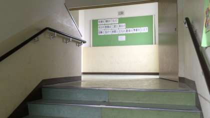 毎日、この階段を上がってくる3年生は、この先生達からの熱いメッセージを見て教室に入り学校生活を送っています。