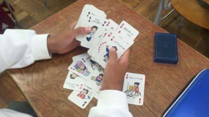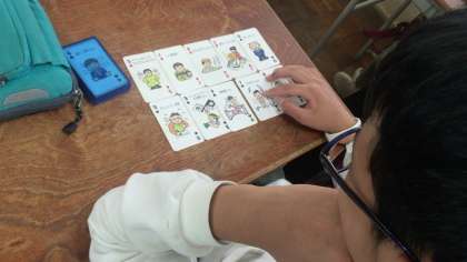 今日の3・4限目、2年生の進路学習(キャリア教育)として、ヒューマンアカデミー高等学校から、出前授業として講師の方から、SPトランプを使った授業を受けました。