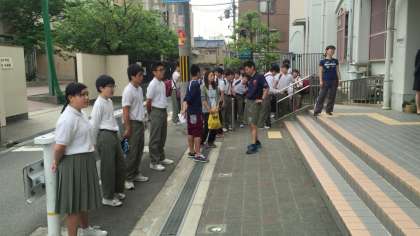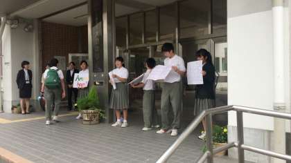大池中の朝の様子です。 生徒会執行部と風紀委員が毎朝のあいさつ運動を行います。