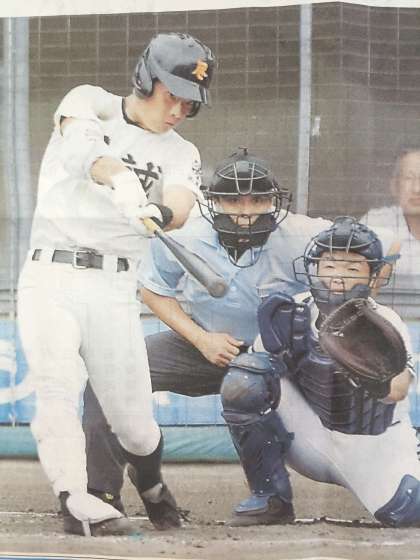 そう、写真のホームランバッター尽誠学園野球部主将・四番その人こそ、大池中のOB、68期生の松井永吉君なのです。
