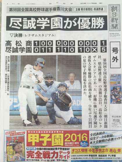 第98回全国高校野球選手権大会 香川大会で尽誠学園が優勝!