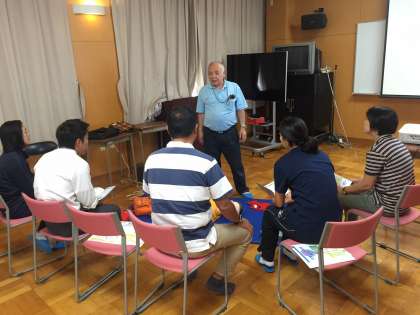 先ずは映像で救急救命の実態とその方法のレクチャーを受けました。その後、全参加職員が実技実習指導を受けました。