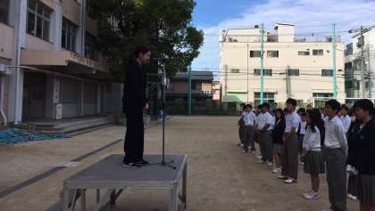 本日の全校集会で、本日より新しくお迎えしました特別支援サポーターの高橋真依子先生を全校生徒に紹介しました。