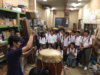昨日行われた2年生フィールドワークでは、人権学習の一環で芦原橋に行って来ました。事前学習で太鼓などの皮文化に触れるなど、部落の歴史学習に臨みました。講師の方々の案内で、実際に太鼓作りや歴史を自分達の足で巡るこの取り組みに生徒の皆も興味津々、一生懸命学んでいました。