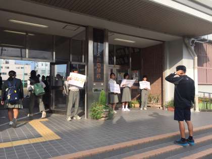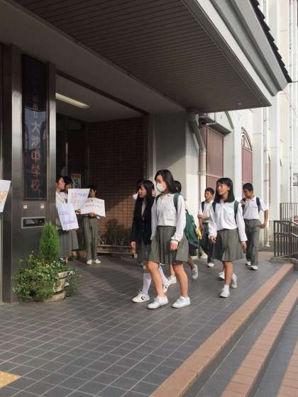 大池中百景 其の二 公開日 2016/10/20 更新日 2016/10/20 お知らせ 正門前では、いつものように風紀委員会が、委員会活動で作ったプラカードを手におはよう運動をしてくれています。 いいね(0)
