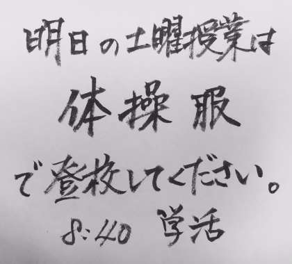 明日の土曜授業について 公開日 2016/10/28 更新日 2016/10/28 お知らせ 明日は土曜授業にて、地域交流型の交通安全教室を行います。生徒の皆さんは、体操服で登校してください。 いいね(0)