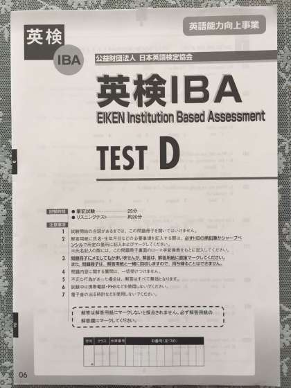 先週の3年のIBAに続いて、月曜日の5限目に2年生がIBAを受検しました。