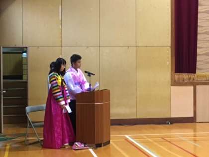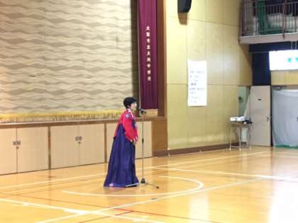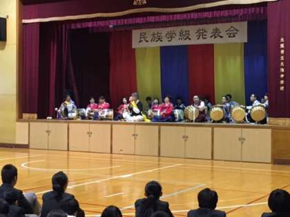 民族学級発表会 其の一 公開日 2016/11/17 更新日 2016/11/17 お知らせ 今週の月曜日から始まった大池中学校文化・芸術週間ですが、前半の大きな目玉は、何と言っても火曜日に行われた民族学級(民族クラブ)の発表会です。今年は43名の生徒が日頃の活動の成果を発表しました。 発表会は冒頭、保護者会会長からの挨拶から始まり、生徒たちの発表の前に、大人達のサムルノリのパフォーマンスからスタートしました。司会進行は当たり前の如く、代表生徒たちです。 いいね(0)