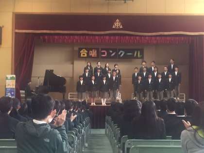 2年合唱コンクール 其の三 公開日 2016/11/22 更新日 2016/11/22 お知らせ 2年生の最後は2組です。 選択曲目は『海の声』CMでよく流れていた名曲です。 素晴らしいアレンジで熱唱していました。 いいね(0)