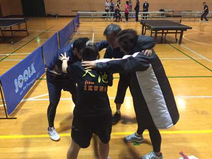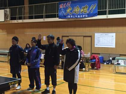 本校からは前年度に引き続き、PTA大熊会長、福山副会長の黄金コンビ、そして教職員の卓球部顧問辻井・坂本の両教諭が出場しました。