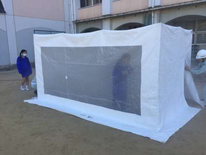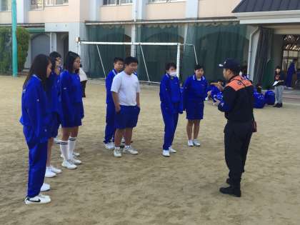 生野区役所の方から貴重なお話を画像を交えてして頂いた後、各学年が校内の各ブースに分かれて、地域の方々と一緒に防災体験をしました。