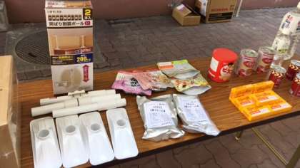 体験・実習の他にも、本校が広域避難場所であるので備蓄してしてある緊急用の水、食糧、簡易トイレなどの展示も行いました。