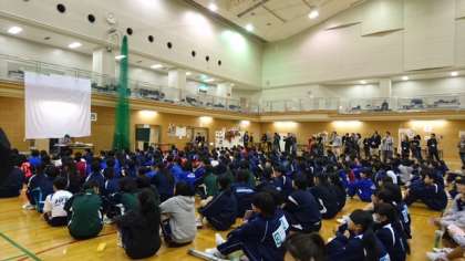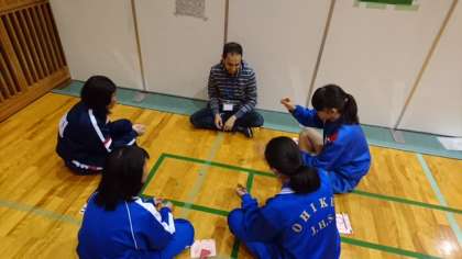 12月3日(土)午後、城東スポーツセンターでイングリッシュ・デイが行われました。大阪市内のC-NETの先生約100名が企画や運営に携わり、中学生に英語でのコミュニケーションを楽しんでもらおうと、毎年行われている催しです。大池中からも1年生3名が参加しました。