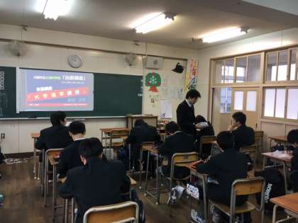 1年 土曜授業 其の一 公開日 2016/12/13 更新日 2016/12/13 お知らせ 10日、2年生と同じく1年生も土曜授業がありました。 1年生は進路学習の一環で、高校からの出前授業を受講しました。 来ていただいた高校は、男子校『興国高校』と女子校『明浄学院高等学校』です。 各高校からそれぞれ3講座計9講座を開講していただき、事前に生徒からの参加希望に則りそれぞれが分かれて受講しました。 いいね(0)
