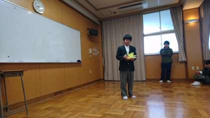 1年生ビブリオバトル! 公開日 2017/02/08 更新日 2017/02/08 できごと ビブリオバトルとは、制限時間内でで本の紹介をし、参加者がその中から一番読みたいと思う本をチャンプ本として選ぶ活動です。1年生では読書の幅をひろげたり、コミュニケーション力アッブを目的に冬休み前から取り組んで来ました。班予選、クラス本選を経てチャンプ本に選ばれた3人の人に朝の学年集会で発表をしてもらいました。朝読書の取り組みも活用して、いろんな本と出会って欲しいと思います。 いいね(0)