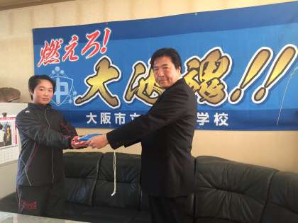 3月5日の大阪市交流大会に向けて、金曜日の放課後、女子バレーボール部部長が応援旗を取りに校長室を訪れました。