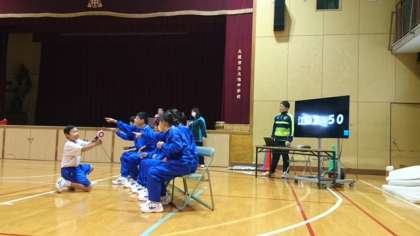 1年学年レクリエーション大会その2 公開日 2017/03/16 更新日 2017/03/16 できごと 「しっぽとり」「ジェスチャーゲーム」と続きます。次々と出てくるお題を瞬時にジェスチャーで伝えるのはなかなか難しいものですが、なんのなんの、素晴らしかっったです。拍手がわいたり、お腹を抱えて笑ったり、大盛り上がり!! いいね(0)