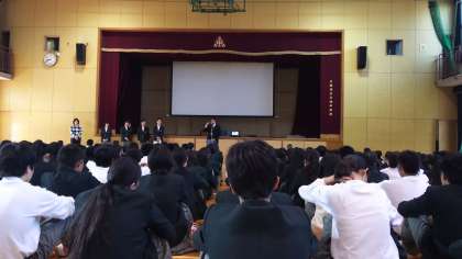 本日の校長講話では、20分ほどの講話でしたが「いじめの定義」から始まり、「いじめ事象」について、「いじめの構造」へと話が続き、講話の中では『絶対にいじめを見逃さない』『絶対にいじめを許さない』『絶対に生徒を見放さない』『絶対に被害生徒を守り抜く』ことを明言され、最後に学校長として、教師として、大池中学校として、いじめ撲滅に向けて毅然とした対応で取り組む決意が述べられました。