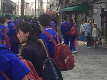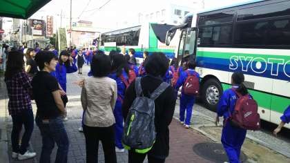 学校を出発し、今里通りでバス乗車です。 沢山の保護者の方が見送りに来られていました。 行ってきまーす!