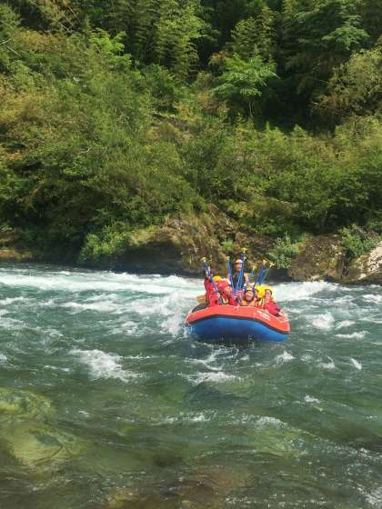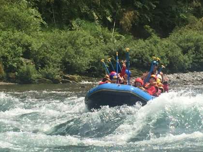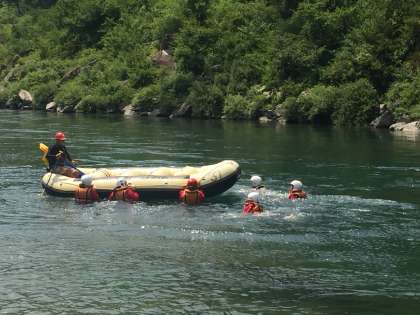 淀みで落水訓練の後、いよいよ荒波のなかをラフティングです。