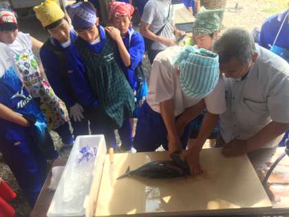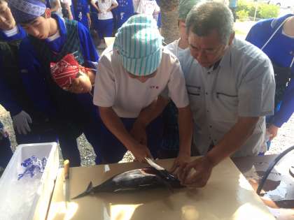 カツオのたたき其の四 公開日 2017/06/01 更新日 2017/06/01 お知らせ 勉強会の後は、いよいよカツオを一本三枚におろし、背身、腹身に切り分け、4本の柵を作ります。 みんな慣れない包丁に四苦八苦! いいね(0)
