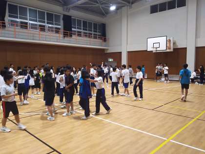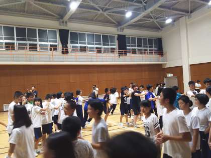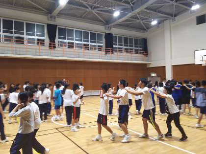 列車 というゲーム中です。 負けたら勝った人の後ろについていく あのゲームです。