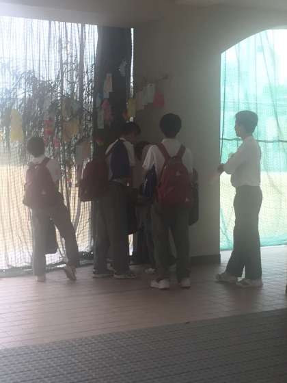 七夕 其の二 公開日 2017/07/07 更新日 2017/07/07 お知らせ 本日の朝の様子です。登校してきた生徒たちが我れ先にと短冊に群がります。 さて、生徒たちはどんなお願いをするんでしょうね? そりゃ先生だって気になりますよねぇ。 いいね(0)
