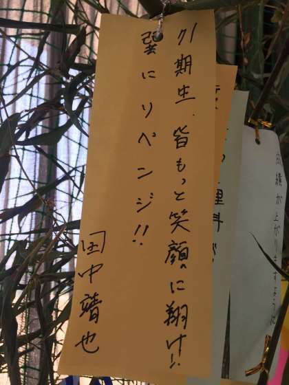 七夕 其の四 公開日 2017/07/07 更新日 2017/07/07 お知らせ 中には、先生の短冊も有りました。 試合で負けた悔しさが滲み出ていますね。これを見た部員は、さぞかしビビッているでしょう。 天気予報では、どうやら今晩は晴れそうです。 みんなそれぞれの願いが叶いますように! 大池中に栄えあれ!! いいね(0)