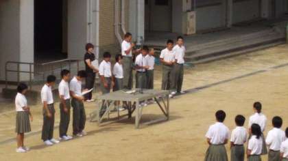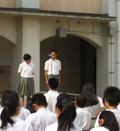 はじめに、生徒会から5日に開かれた生徒議会を受けて、7月.8月の学校目標が報告され、各委員会からも月間の取り組みと目標が報告されました。
