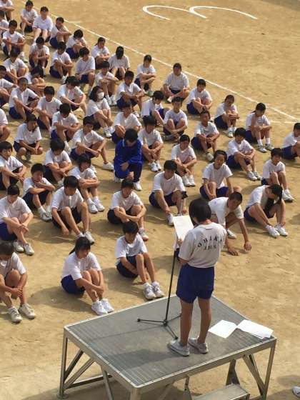 縦割りスポーツ大会其の一 公開日 2017/07/14 更新日 2017/07/14 お知らせ 今日は朝から、蒸しムシの一日でしたが、今年も生徒会お約束の『縦割り大ドッチボール大会』が開催されました。 縦割りとは、1年生から3年生までの混合チームで対戦します。即ち、同じ一つのチームに1年生から3年生が混在します。 画像は開会式からルール説明、ラジオ体操、など試合開始までの様子です。 いいね(0)