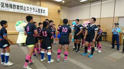 これが地域貢献だ 其の四 公開日 2017/08/21 更新日 2017/08/21 お知らせ さらに、大阪府警ラグビー部の方と大池中ラグビー部のスクラムの記念撮影から始まりました。 大池中ラグビー部にとっても思い出に残る時間となりました。 いいね(0)