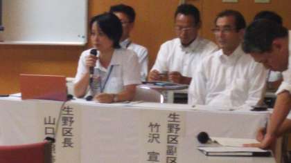 山口区長からは、塾講師・市内小規模小学校校長・教育委員会などの豊富なキャリア経験を元に、生野区が抱える様々な教育課題を数値化された豊富なデータで資料化、そして分かりやすく画像で示しながら、丁寧に説明されました。