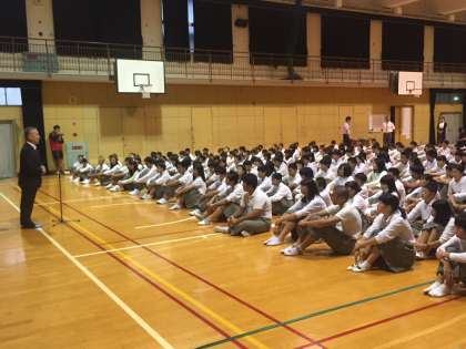 全校集会 公開日 2017/10/03 更新日 2017/10/03 お知らせ 昨日は定例の全校集会の日でした。先週の体育大会を振り返って校長先生からのお話の後、新しく着任された技術科の先生のご紹介がありました。 着任された高橋麻司先生は、44年間企業人としてご活躍され、ご退職後も向学心に燃え、大学院でソーラーカー研究のかたわら大学生への教鞭もとっておられます。 生徒達は技術の授業以外にもその豊富な経験から、生きる力として大切な多くのこと事を学ぶことでしょう。 いいね(0)