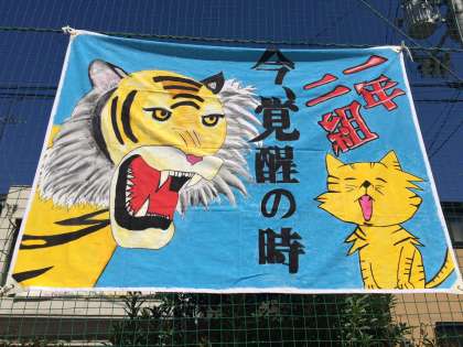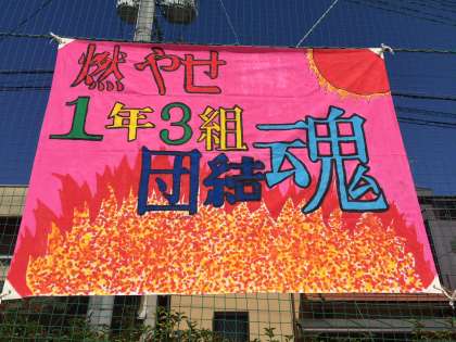第69回体育大会 其の四 公開日 2017/10/05 更新日 2017/10/05 お知らせ 各クラスの応援旗は、勝敗を左右するクラスの顔、どの応援旗も気合いの入った素晴らしい出来栄えです。 画像は1年生の学級旗です。 いいね(0)