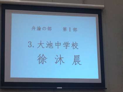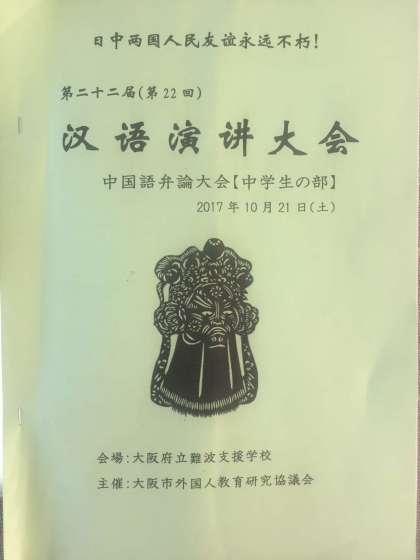 中国語弁論大会 公開日 2017/11/09 更新日 2017/11/09 お知らせ 去る10月21日浪速区の大阪府立難波特別支援学校のホールで行われた第22回中国語弁論大会に本校3年生の徐沐晨君が大阪市内に住む多くの中国の仲間と共に参加し、朋友(友達)という題でスピーチしました。 少し緊張気味でしたが、大池中の友達も応援に駆けつけ、無事スピーチする事が出来ました。 18日の創立70周年のセレモニーでも同じ内容をスピーチしてくれますのでお楽しみに、乞うご期待! いいね(0)