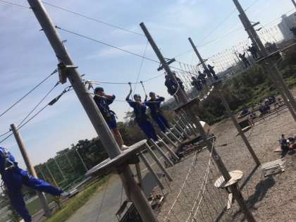 ハイエレメントはアスレチックで8mという高さに声を荒げながら少しずつ前に進む生徒の姿に微笑みながらも1年生の時とは違うたくましさを感じました。