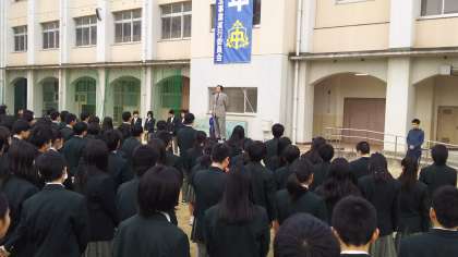全校集会 其の三 公開日 2017/12/11 更新日 2017/12/11 お知らせ 全校集会の最後は、校長先生からのお話です。 今週水曜日から始まる進路懇談会を踏まえて、懇談会に際して三年生(受験生)の心構え を、そして1週間後から始まる1・2年生期末懇談会についてお話がありました。 いいね(0)