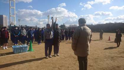 耐寒駅伝大会 其の二 公開日 2018/02/06 更新日 2018/02/06 お知らせ 選手宣誓、校長先生からの激励の言葉の後、ラジオ体操が終わり、体を温めたところで いよいよスタートです。 校長先生の号砲で第1走者が一斉にスタート! 長い長いレースが始まりました。 いいね(0)