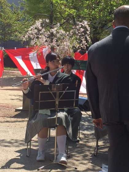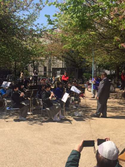 丁度一週間前の4月1日に行われた、中川地区桜まつりに引き続き、本校の吹奏楽部がお