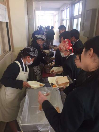 画像は1年生の昼食の時間の様子、この時期ですから授業中のとてつもない緊張感から