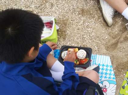 昼食中 おいしいお弁当をモグモグ